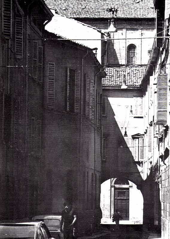 nel fianco settentrionale della chiesa di San Tommaso, già esistente come cappella dopo il Mille, lungo Borgo Antini all’angolo con Strada Farini;