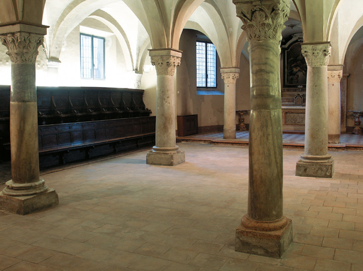 Un fitto intrecciarsi di colonne e volticelle a crociera, che può essere paragonato ad un “giardino di pietra”. Qui sono conservate le reliquie di San Bernardo degli Uberti, patrono della Diocesi.