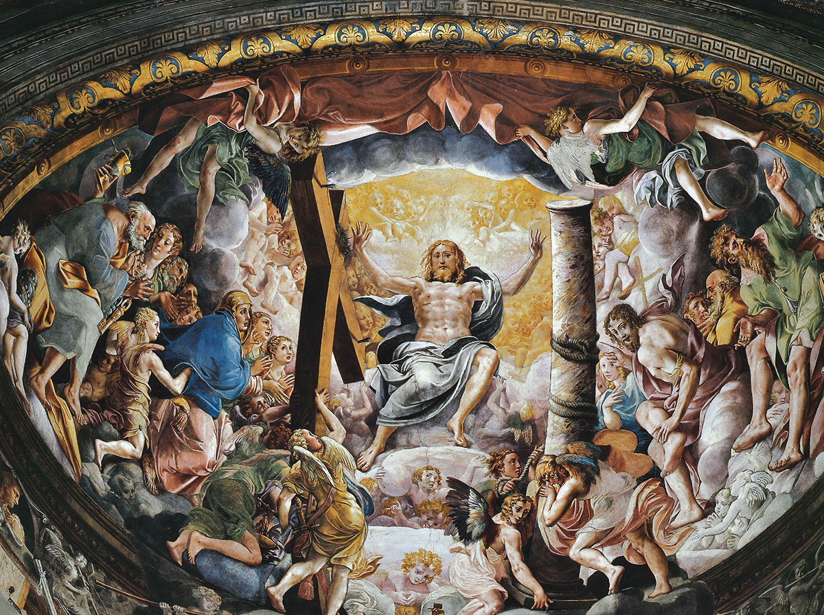 A cavallo tra il linguaggio pittorico rinascimentale e l’audacia dell’arte barocca, questa cupola venne ben presto definita “scandalosa” da alcuni critici contemporanei. Ciò che più colpisce l’osservatore è indubbiamente l’Ascensione di Maria in cielo: un vorticoso intreccio di figure che accompagnano la Vergine verso il cerchio dei beati. Al centro della cupola vi è il Cristo, che discende dalla luce con una posa plastica e per l’epoca incredibilmente innovativa.