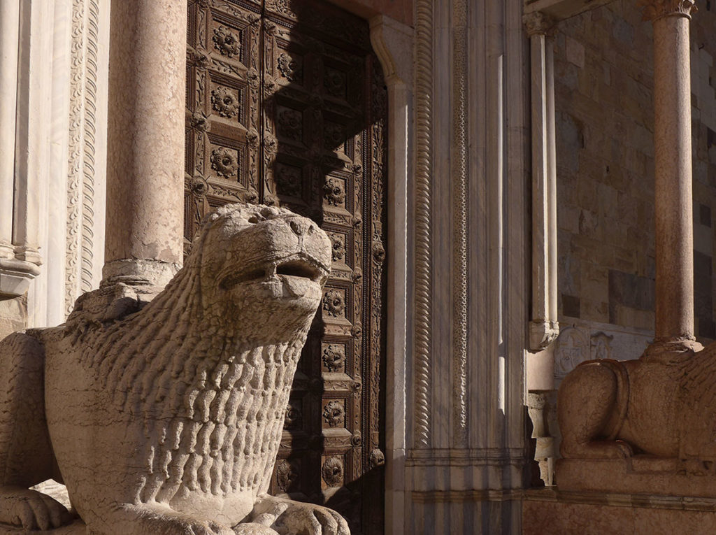 Due grandi leoni di marmo sorvegliano l’ingresso delle Cattedrale: scolpiti nel 1281 da Giambono da Bissone sono uno dei simboli del Duomo.
